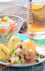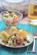 Подавать с отваренным молодым картофелем и свежим салатом. -