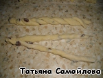 Скатать тесто в колбаску, нарезать на куски шириной 2 см. У меня получилось 20 кусочков.