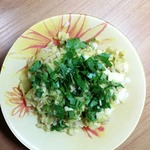 Далее мелко порезанные яйца.