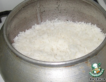 Рис сварить до готовности, без соли (1 стакан риса : 2 стакана воды).