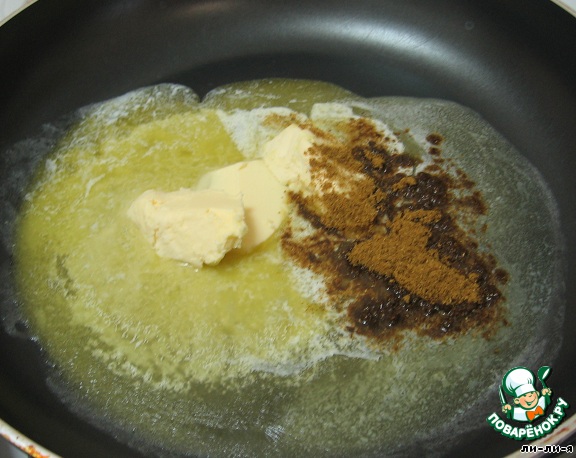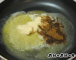 Растопить сливочное масло на сковороде и добавить смесь карри. Дать маслу немного впитать аромат этой специи.