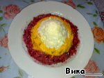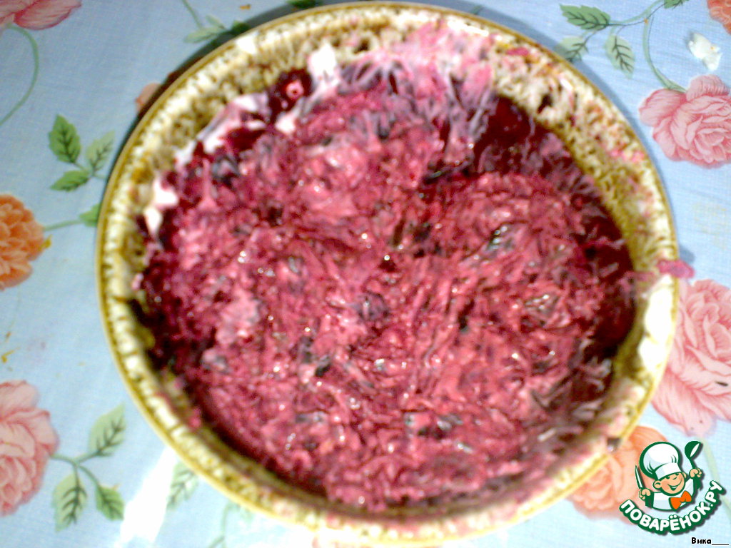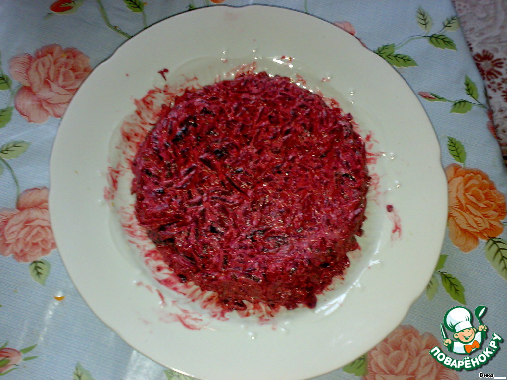 и смешиваем с тёртой свеклой и майонезом.