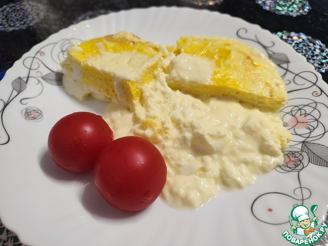 Высокий, пышный, легкий в приготовлении омлетик.