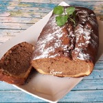 Сверху остывший кекс можно посыпать сахарной пудрой или полить глазурью (для глазури 3 столовых ложки апельсинового сока смешать с 170 граммами сахарной пудры - этой глазурью покрыть кекс).