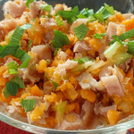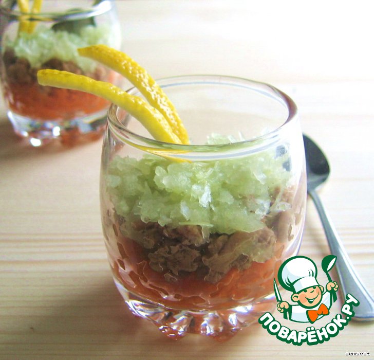 Лeгкий и очень свежий, но в то же время питательный и сытный салат! Предлагаются различные варианты оформления и подачи. Рецепт этого блюда был размещeн на сайте в 2010 году пользователем sernagr под названием "Липсо" и иллюстрирован мной в рамках акции "Раскраски".