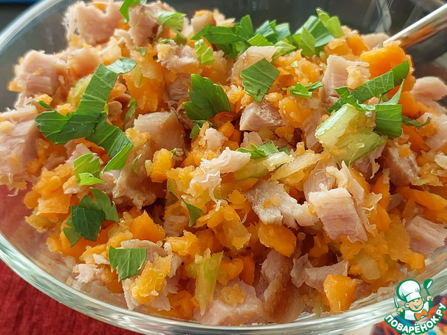 Можно просто смешать вместе тунец, морковь и сельдерей, немного посолить, добавить лимонный сок. Выложить в салатницу. Но в таком виде салат надо кушать сразу же. Если долго постоит, из овощей выделится сок.