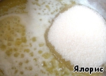 Высыпаем сахар, помешиваем до полного растворения, увеличиваем огонь и провариваем сахар. Автор рекомендует делать это на протяжении 4-5 минут.