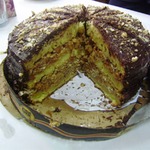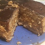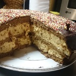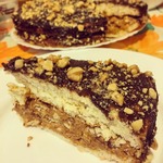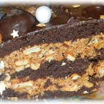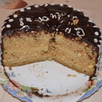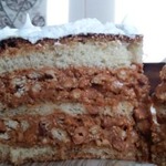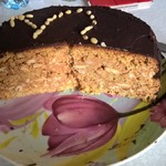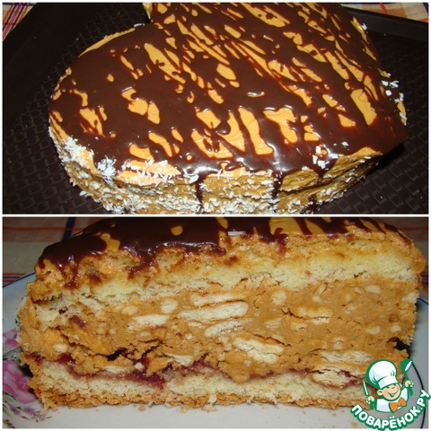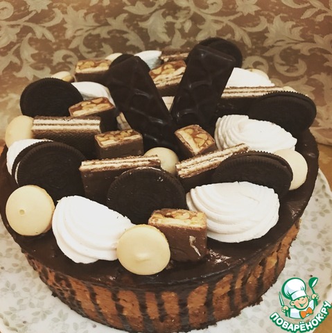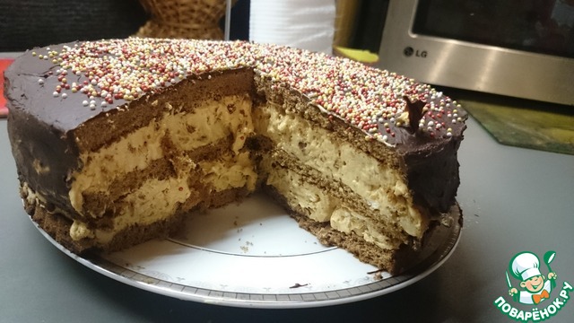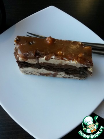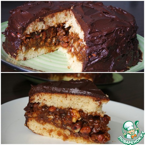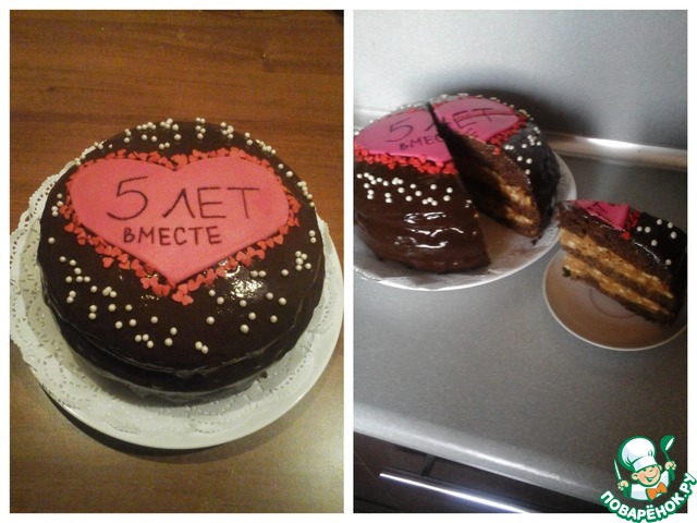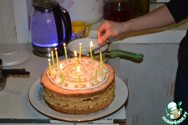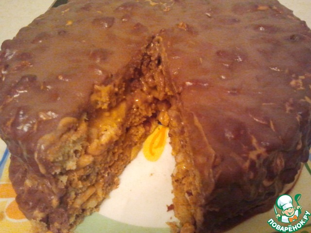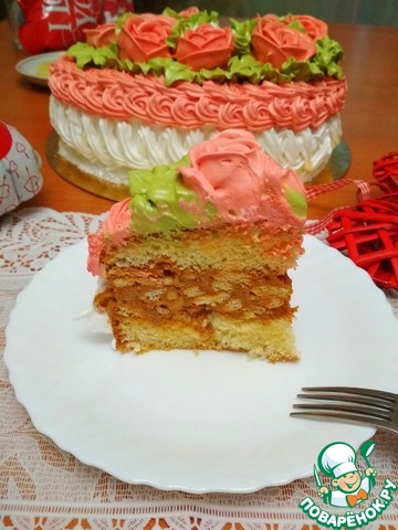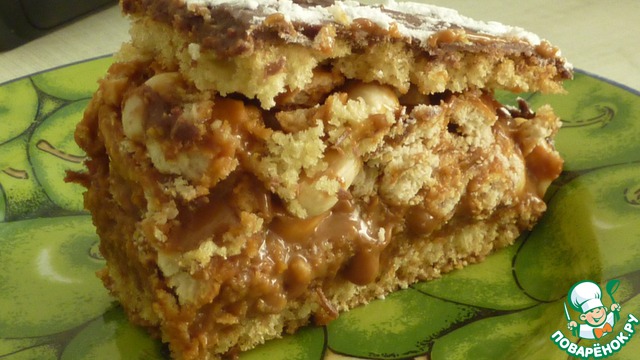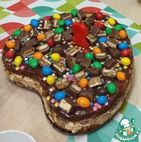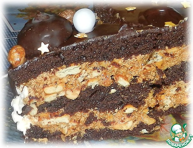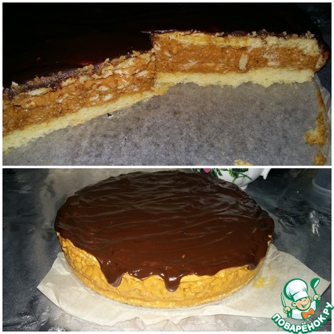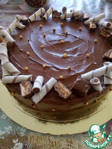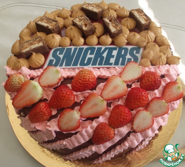 Этот торт я хочу посвятить прекрасному, доброму и внимательному человеку - Светлане (мисс)! Благодаря ей я решилась принять участие в "Раскрасках". Она меня очень сильно поддержала и настроила на то, что у меня все получится... Это мой дебют! ))) Рецепт этого блюда был размещен на сайте в 2009 году пользователем Янчік под названием "Сникерс", и иллюстрирован мной в рамках акции «Раскраски». Торт замечательный! Он получился очень вкусным! И действительно по вкусу напоминает "Сникерс", благодаря начинке... Отличный бисквит!