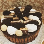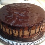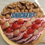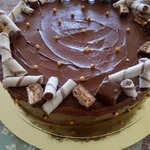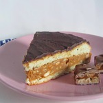 Я решила что "Сникерс" все-таки должен быть в шоколаде... Растопила 100 г. молочного шоколада, смешала с 3 ст. л. молока. И покрыла торт со всех сторон. И бока украсила айсингом. Поверх шоколадной глазури посыпала сахарной пудрой, через трафарет!