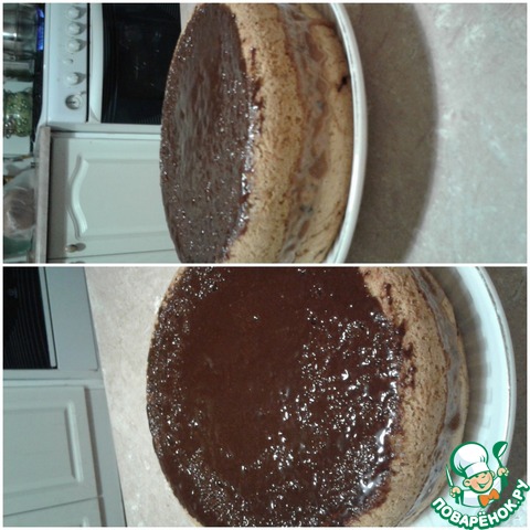 На нижний корж нанести крем (я решила сделать это в круге от разъемной формы, чтобы было ровнее).