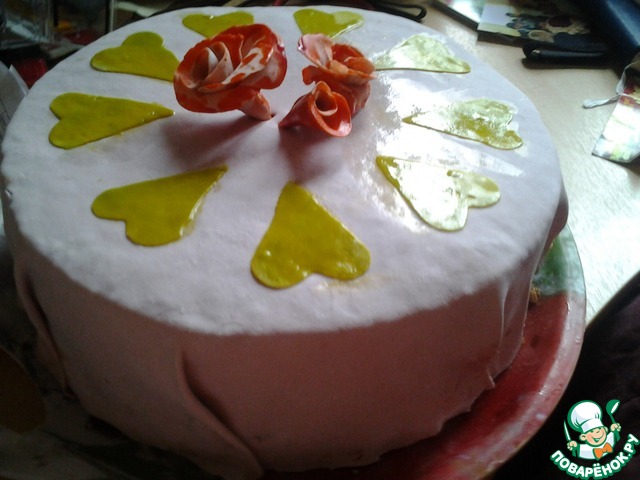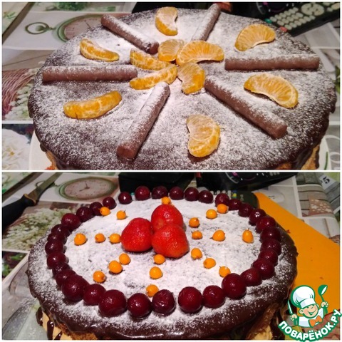 И поставить в холодильник для того что бы крем немного застыл. Вот наш торт и готов. Теперь украшаем, по желанию...