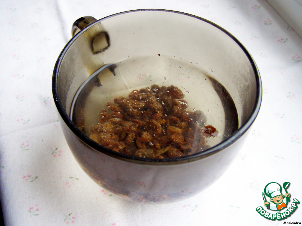 Начинаем с изюма - его залить водой и оставить до набухания. Лучше на ночь.