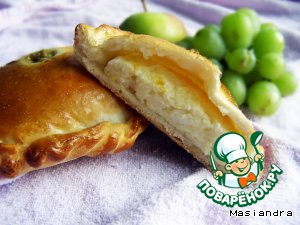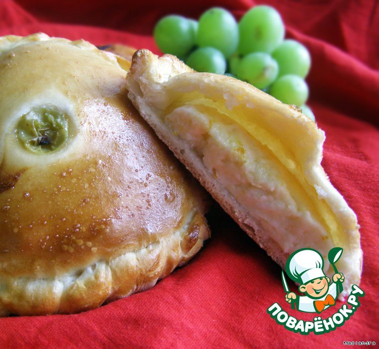 В серединке сделать углубление и положить густое варенье, либо любую ягоду. Я положила виноград.