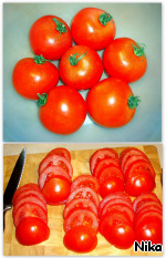 Помидоры нарезала (ножом с зубчиками) кольцами.