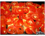 У автора в рецепте вначале помидоры посыпаются сыром, затем смазываются майонезом. Я сделала наоборот. Сначала залила помидоры сметаной, а сверху посыпала сыром. Поставила в разогретую духовку (180 град.) на 20 минут. (У автора время для духовки 7 - 8 минут или в микроволновке 4 минуты).