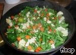 Овощную смесь обжарить на сковороде до мягкости. Добавить специи.