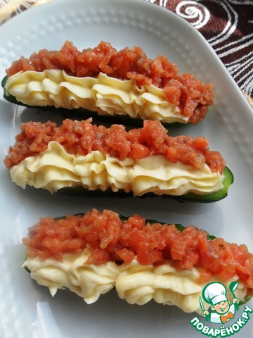 [+5]Закуска на огурцах с творожным сыром, еще хорошо в него добавлять зелени.