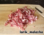 Бекон или ветчину так же мелко нарезать. У меня была уже нарезанная ветчина.