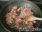 Добавить к луку бекон/ветчину и обжарить минуты 2-3.