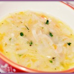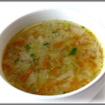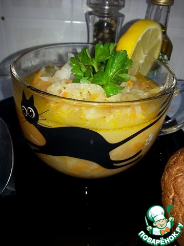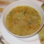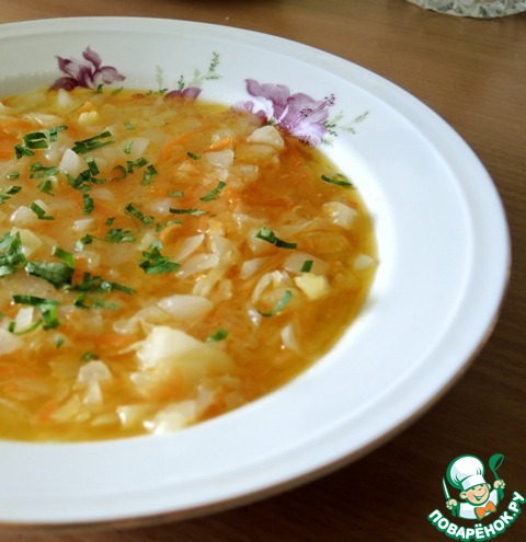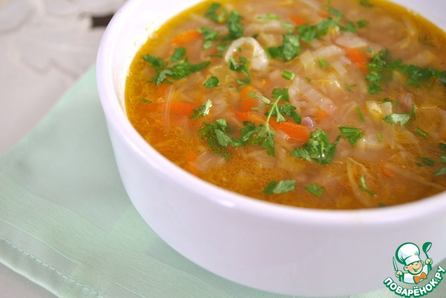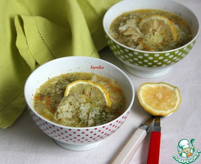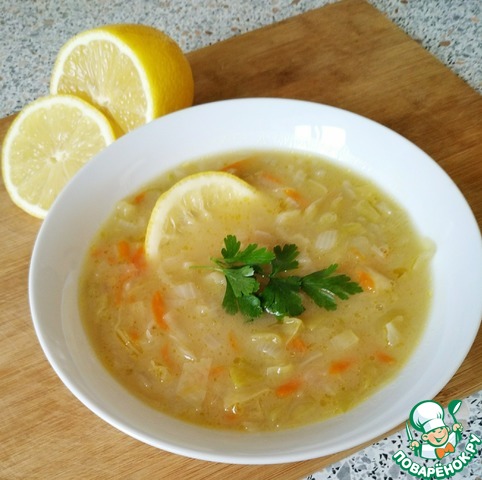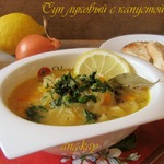 Рецепт этого блюда был размещен на сайте в 2008 году пользователем татра под названием "Луковый суп с капустой" и иллюстрирован мной в рамках акции "Раскраски". Густой, но в то же время, легкий суп, нечто среднее между луковым супом и постными русскими щами. А добавление лимона делает его особенным и оригинальным. Хороший вариант для разнообразия обеденного меню для тех, кто на диете и для тех, кто соблюдает пост.