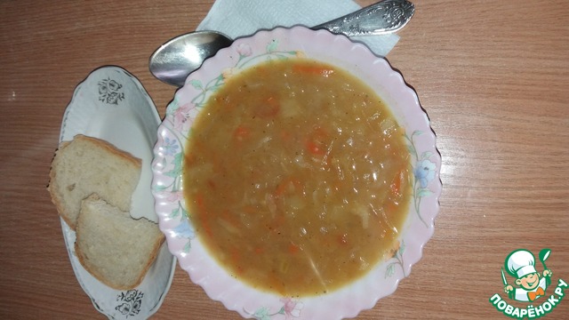 Суп получается густой, по консистенции мне напомнил айнтопф, т. е. его можно употреблять с успехом и на ужин. И еще, несмотря на то, что суп без мяса, он понравился даже моему мужу, чем я была крайне удивлена. )