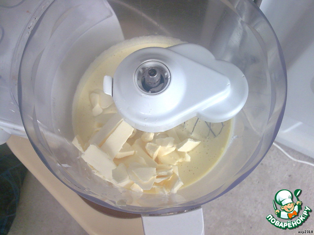 Режем маргарин (мелко) и добавляем к яйцу взбитому с сахаром и ванилином. Взбиваем.