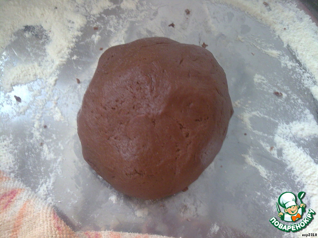Муку с какао и разрыхлителем теста добавляем к яйцу с маргарином и сахаром, взбитому. Замешиваем тесто.