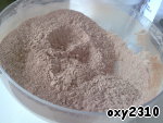 Муку просеиваем + 5 г. разрыхлителя теста + 25 г. какао. Перемешиваем.