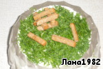 Следующий слой - огурцы, посолить. Этот слой я не смазывала майонезом.
