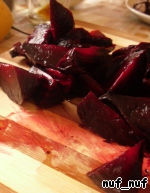 Сочетание - свeкла и апельсин для меня не ново, но дольки апельсина в салатах я не люблю. В этом рецепте, апельсин хоть и играет важную роль, но скорее аккомпанирует, чем исполняет главную партию.