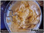 Добавить размягченный маргарин и продолжать взбивать, пока масса не увеличится в объеме.