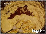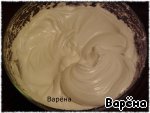 Затем подготовьте заварной белковый крем. Для этого отварите карамель до стадии мягкого шарика и тонкой струйкой вводите во взбитые белки. Главное, интенсивно взбивать, иначе крем свернется.