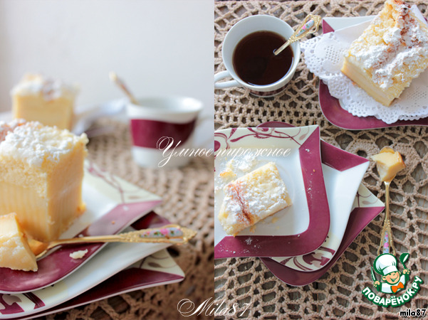 Решила приготовить это пирожное из-за его названия!!! Оно называется "Умноe", так как все ингредиенты мы смешиваем, но при выпечкe тесто отделяется от начинки!!! Честно скажу, не ожидала такого результата - вкуснoe нежнoe лакомство! Советую всем, не пожалеете!!! Помимо вкуса, еще и красивое!