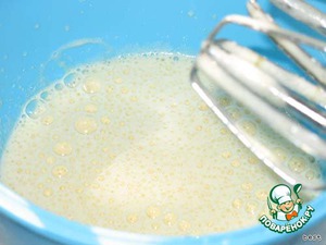 Взбить яйца, сахар и ликер миксером. Сахар должен полностью раствориться, а масса должна стать почти белой.