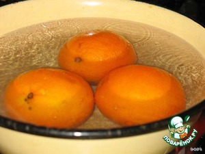 Приготовим начинку: мандарины положить в кастрюльку, залить водой и кипятить около 15 минут.