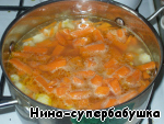 Добавить тыкву, посолить, поперчить, довести до кипения и варить до готовности овощей.