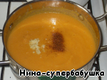 Добавить специи по вкусу. Я положила молотый имбирь и молотый мускатный орех. Добавить измельченный чеснок.