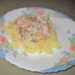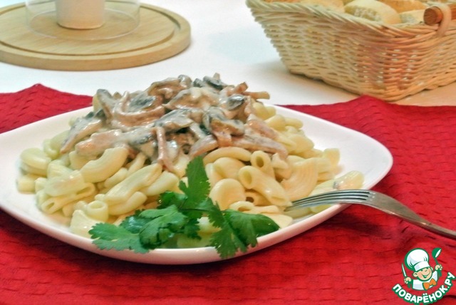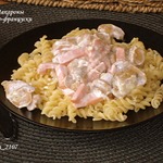 Макароны с очень вкусным соусом. Готовить быстро и несложно, а результат обязательно порадует. Рецепт этого блюда был размещен на сайте в 2009 году пользователем Эльвирунчик под аналогичным названием и иллюстрирован мной в рамках акции "Раскраски".