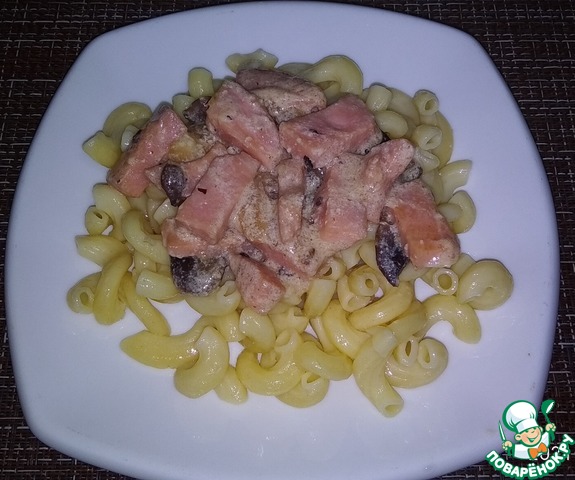 Отвариваем макароны, выкладываем на тарелку, сверху кладем соус. Приятного аппетита!