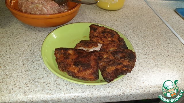 Обмакиваем бендерики в кляре и жарим на разогретой сковороде с обеих сторон на маленьком огне под крышкой (!) до золотисто-коричневого цвета. На 1 заход жарки – 1 ст. л. масла.