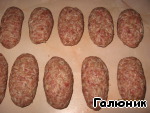 Из фарша формируем лепёшки и на серединку выкладываем грибочки.
