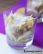 Сразу оговорюсь, в оригинале салат был в слоеном формате с майонезом. Мне кажется, это тяжеловато и как-то по-зимнему, что ли. Поэтому предлагаю изменить форму подачи и сделать салат более легким.
