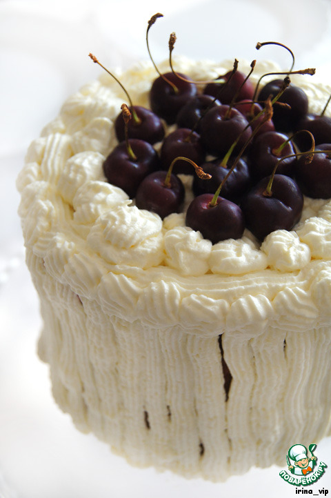 Срезать нити. Смазать весь торт, края в том числе, оставшимся кремом. |