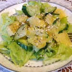Сбрызните салат заправкой, посыпьте кунжутом, посолите и поперчите. Аккуратно перемешайте.