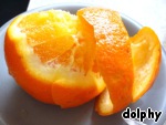 Острым ножом круговым движением снимите с апельсина кожуру вместе с белой частью. -