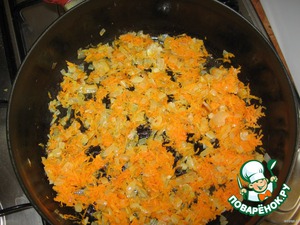 Лук пассеруем на растительном масле, добавляем тертую морковь.