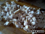 Уже остывшее филе нарезать, опять же, либо полосками, либо мелкими кубиками.