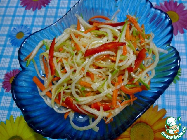 Вкусный сочный салат из редьки. Рецепт этого блюда был размещeн на сайте в 2008 году пользователем Инесса под названием "Шалгам" и иллюстрирован мной в рамках акции "Раскраски".