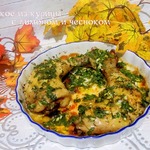 Духовку разогрейте до 200 гр. Посуду для запекания слегка смажьте.