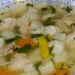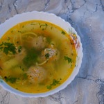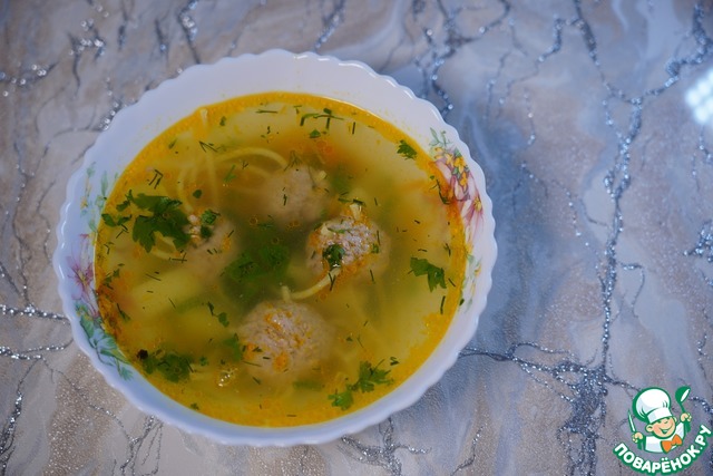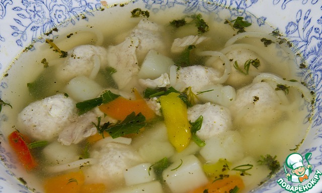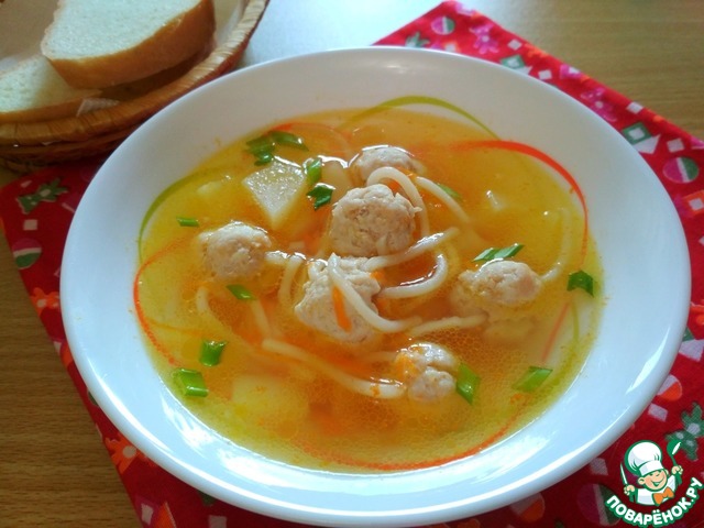 По мотивам рецепта "Казацкие усы". Порадуйте своих малышей и любимых необычным супчиком с фрикадельками. Очень уж забавные эти осьминожки, пока посчитаете, сколько же там ножек, тарелка будет пуста...